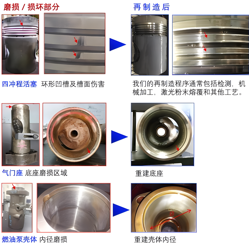 激光再制造修復(fù)技術(shù)廣泛應(yīng)用于航空、軍事、石油、化工、醫(yī)療器械等各個(gè)方面,同時(shí)還可以用于廢品件的再制造,大量節(jié)約國(guó)家資源與企業(yè)生產(chǎn)制造成本。